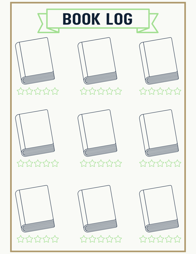 I like the idea of the two example above, but I want something in between. So I went onto Canva, and found this design! I like Canva because I am able to change the color scheme to whatever fits best for my style. This one I created it to match our Tutors of Life color pallet. I like the idea that I can get as creative or simple as I want on the cover and can rate the books once I am finished. The only flaw I see, is that I can only fit 9 books on a page, but I’m sure with some adjusting I can fit a few more on there.